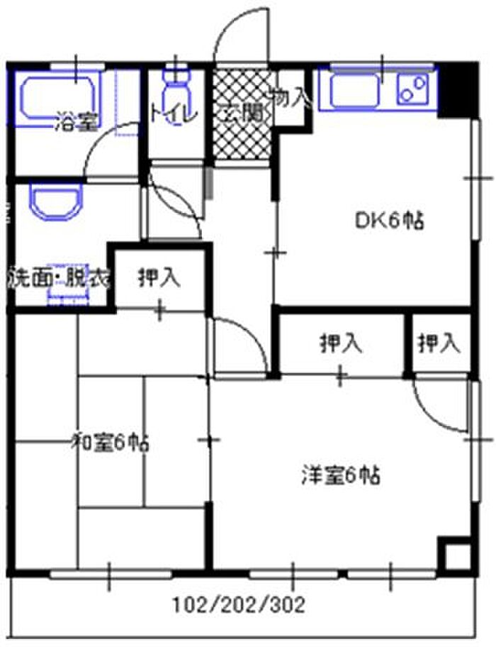 ハイツ中田 102 2DK/1階