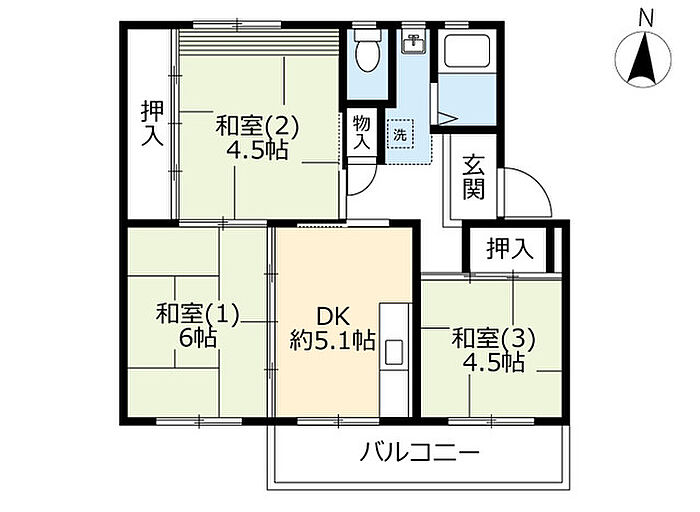 キャンペーン期間中の申込で5年間割引家賃が適用されます(6年目以降は割引前家賃)。詳細はUR窓口へ。面積には、バルコニー面積2分の1を含みます。