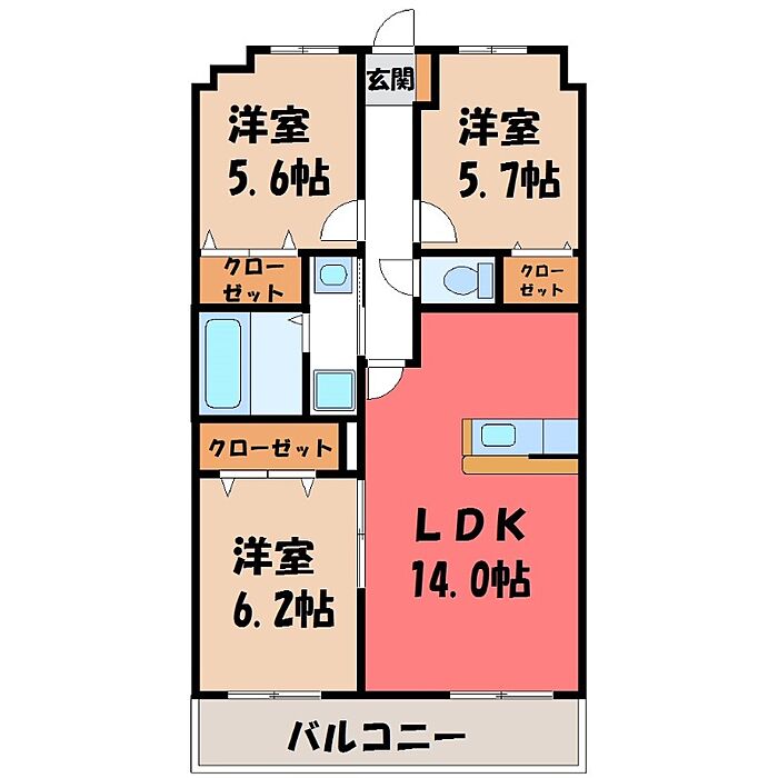宇都宮市中今泉3丁目 マンション 3LDK/4階