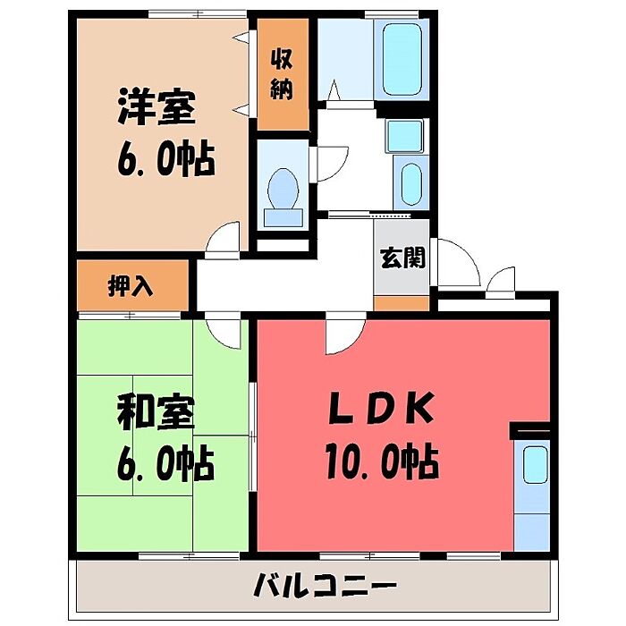 宇都宮市中今泉3丁目 アパート 2LDK/1階