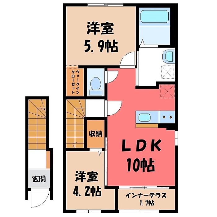 宇都宮市上戸祭3丁目 アパート 2LDK/2階