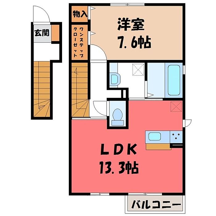 宇都宮市上戸祭町 アパート 1LDK/2階