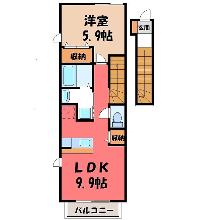 宇都宮市砥上町 アパート 1LDK/2階