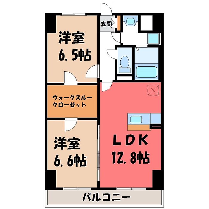宇都宮市今泉3丁目 マンション 2LDK/6階