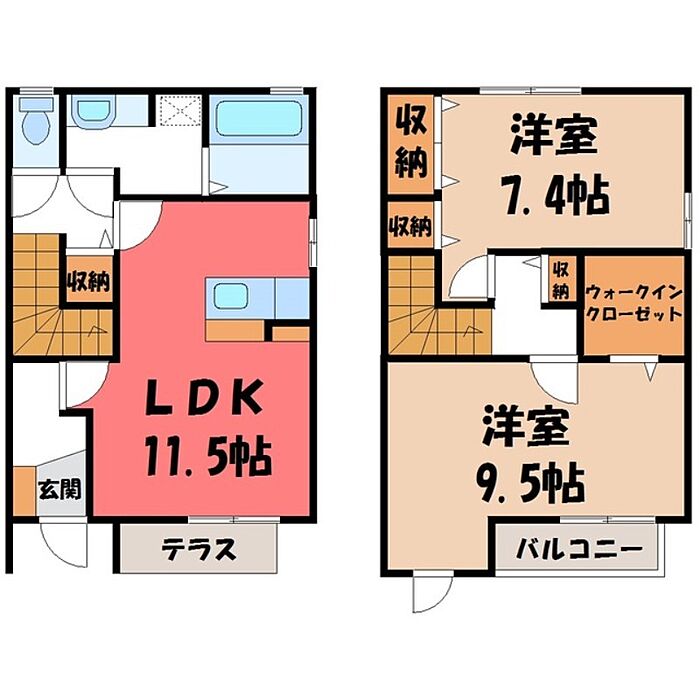 宇都宮市ゆいの杜6丁目 テラスハウス 2LDK/1階