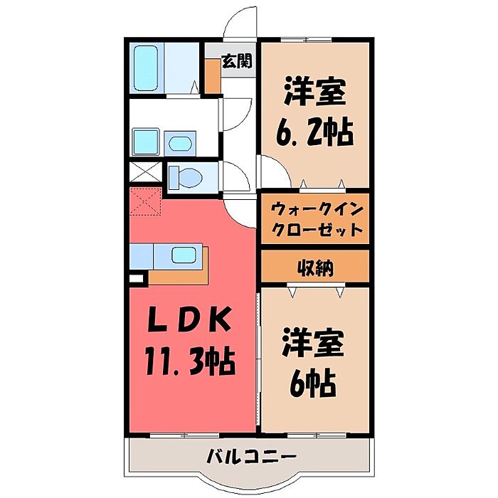 宇都宮市下岡本町 マンション 2LDK/2階