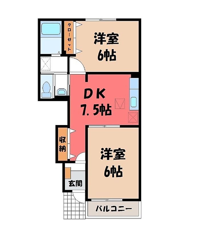 さくら市きぬの里3丁目 アパート 2DK/1階