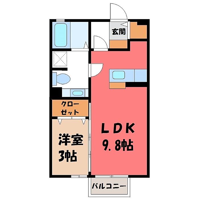 真岡市亀山1丁目 アパート 1LDK/2階