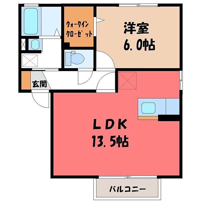 真岡市荒町2丁目 アパート 1LDK/1階