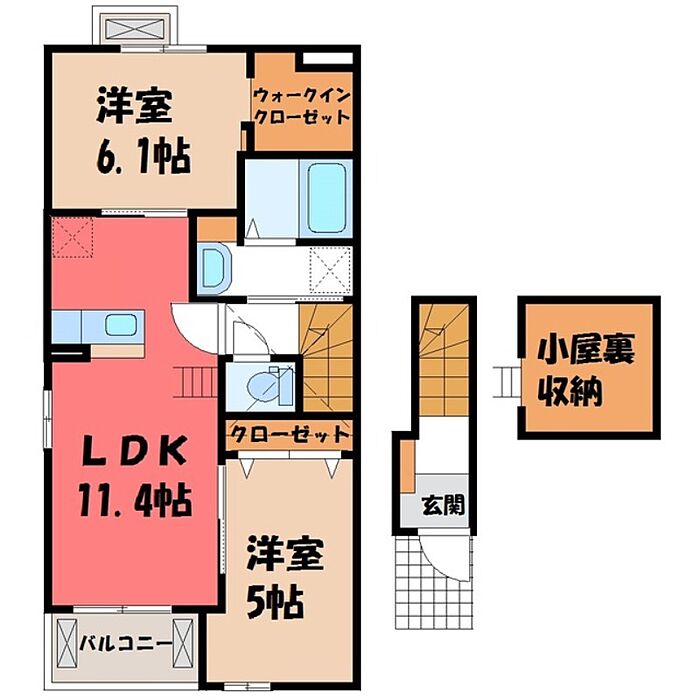 真岡市長田3丁目 アパート 2LDK/2階