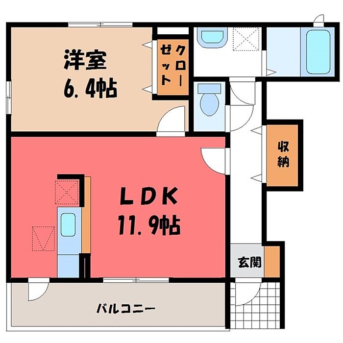 下野市下石橋 アパート 1LDK/1階