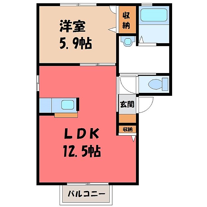 宇都宮市鶴田町 アパート 1LDK/1階