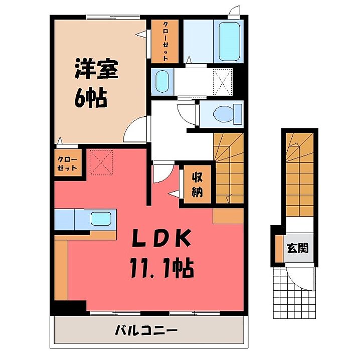 宇都宮市宮の内4丁目 アパート 1LDK/2階