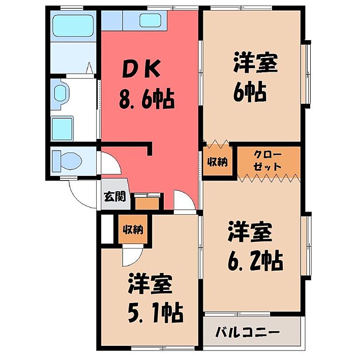 下野市大光寺2丁目 アパート 3DK/1階