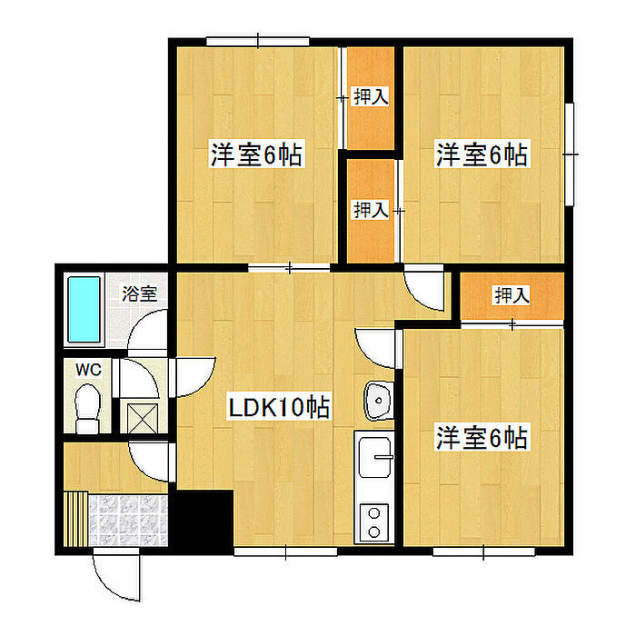 ハッピーハウス2 2B-2 3LDK/1階