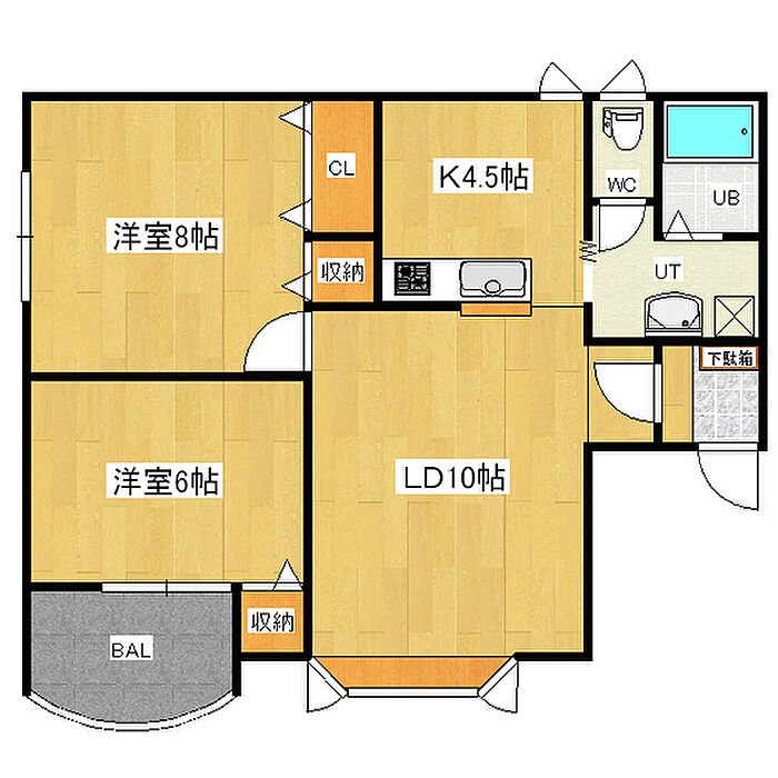 大型商業施設近くで買い物も外食も便利。エアコン・システムキッチン付きで快適生活。バルコニー付きの広々2LDKで、新生活が充実。※駐車場2台無料