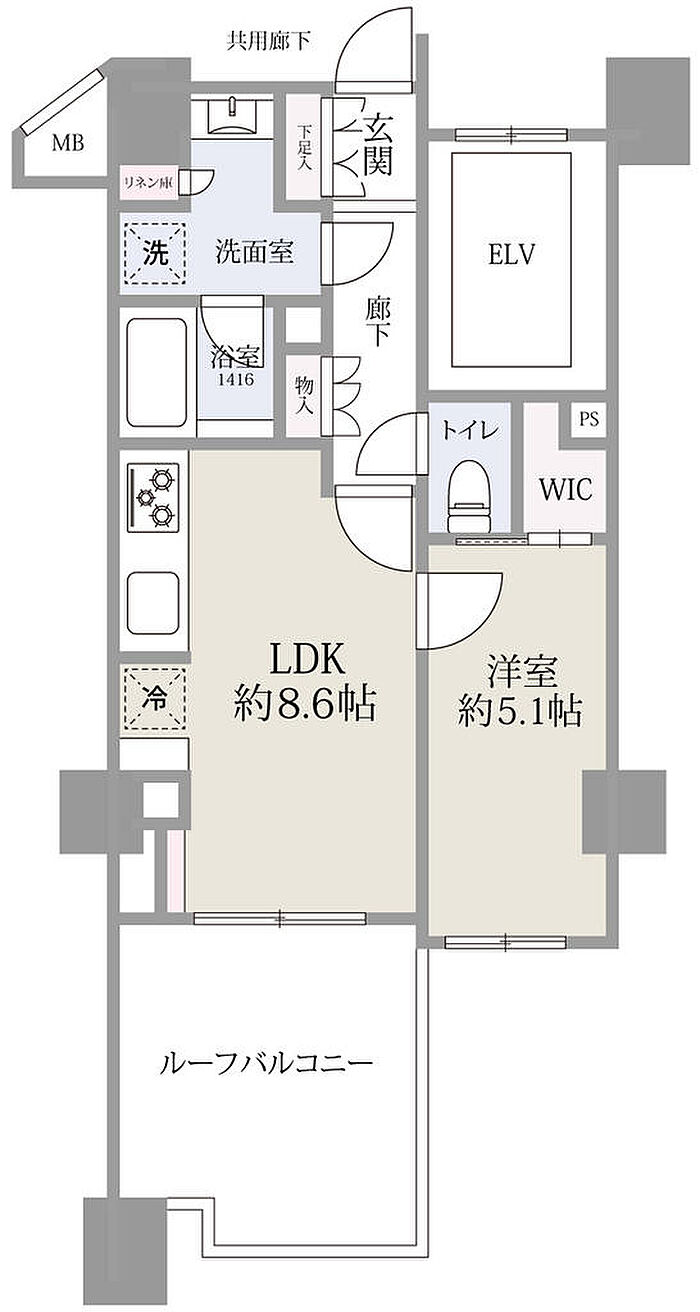 広々ルーフバルコニー、たっぷり収納できるWICが自慢です!