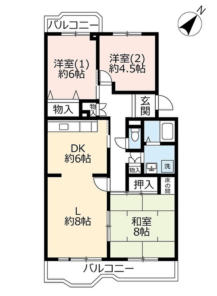 面積には、バルコニー面積2分の1を含みます。周辺を三つの公園に囲まれ、緑豊かで落ち着いた住環境が魅力。最寄り駅周辺は商業施設が充実し、多くの人で賑わっています。