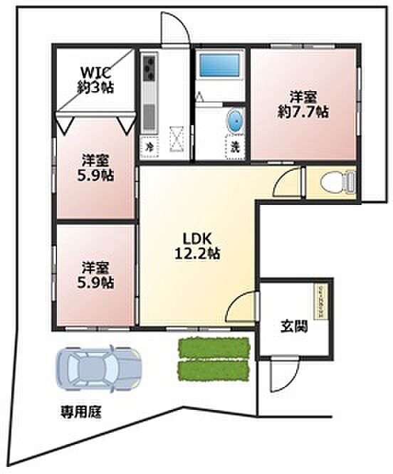 3路線利用可の駅近!広々3LDK!南向き!専用庭・駐車場付き!ウォークインクローゼット付き!安心モニター付きインターホン!快適温水洗浄便座トイレ!女性に嬉しい3面鏡独立洗面台!お料理好きに嬉グリルとオーブン付き3口ガスコンロ付き!エアコン2台付き!都市ガス!