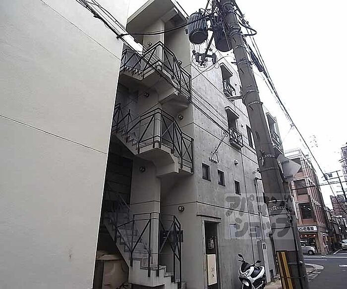 コンクリート打ちっ放しのおしゃれな外観。全部屋角部屋設計。立地重視の方にもおススメです。阪急電車沿線、地下鉄沿線のお部屋探しはアパマンショップ京都にお任せください