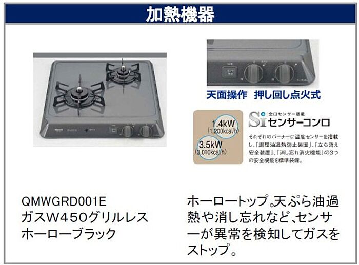 - コンロ二口
