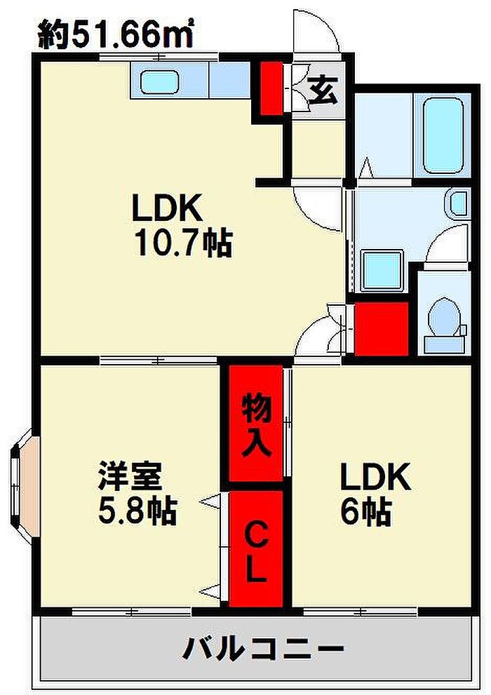 日当たり良好の2LDKの物件です。バス停までも徒歩圏内なので通勤、通学、お出かけにも便利です。