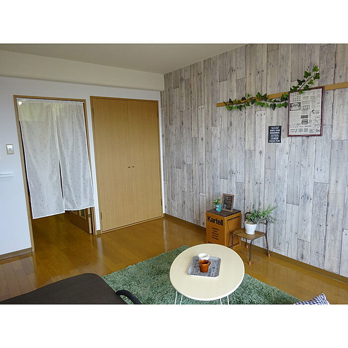 共用通路及びベランダシート貼り、洗面入口ロールカーテン取付、選べるアクセントクロス対象