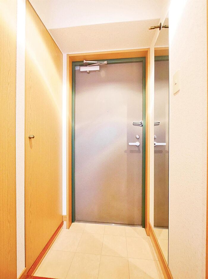 オートロック、防犯カメラ完備の女性向けの一人暮らし向けのお部屋です玄関には等身大の姿見ミラーが付いていて、お出かけ前にスタイルチェックが出来ますよ
