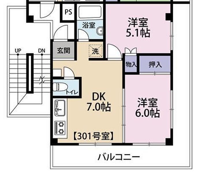 メゾンド中浦和 301 2DK/3階