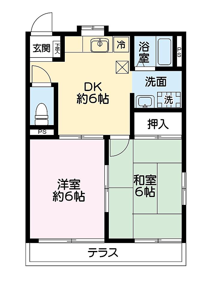 1階角部屋。蕨駅迄徒歩圏内の2DKの物件です。退去時ルームクリーニング費用 借主負担71、500円
