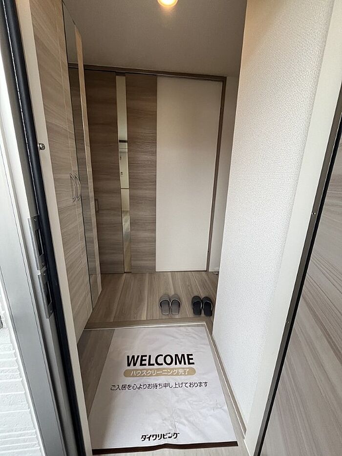 2024年3月築・築浅・駐車1台可・上階なし・南向き・ハウスメーカー施工・オートロック・ネット無料・ウォークインクローゼット・追い焚き・浴室乾燥・1坪風呂・TVモニターホン・シャワートイレ・全室エアコン・室内物干・都市ガス・対面キッチン・システムキッチン・保証人不要・保証会社必須・現況優先 ※内装写真は別部屋の参考写真です