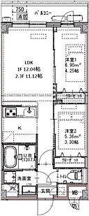 GENOVIA六町 2LDK/2階