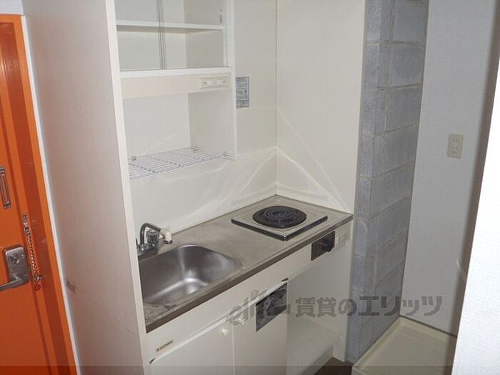 同志社大学まで自転車で9分で通える賃貸マンション。室内はコンクリート打ちっぱなしのオシャレな壁になっています。一口の電化コンロが設置済みで、洗濯機は室内に設置可能です。オートロックも完備。・インターネット無料