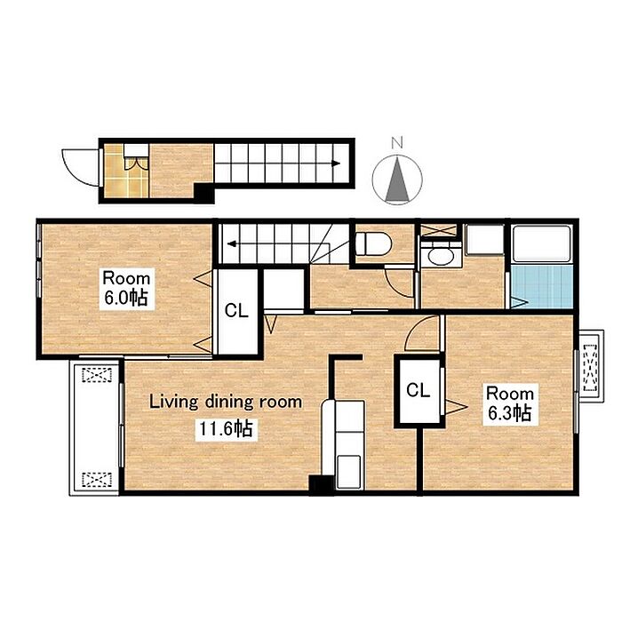 長浜市南田附町 アパート 2LDK/2階