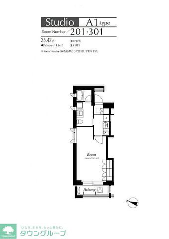 フレンシア麻布 201 ワンルーム/2階