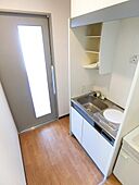 オール電化、オートロック、室内洗濯パン、独立洗面台付きのセパレートです。