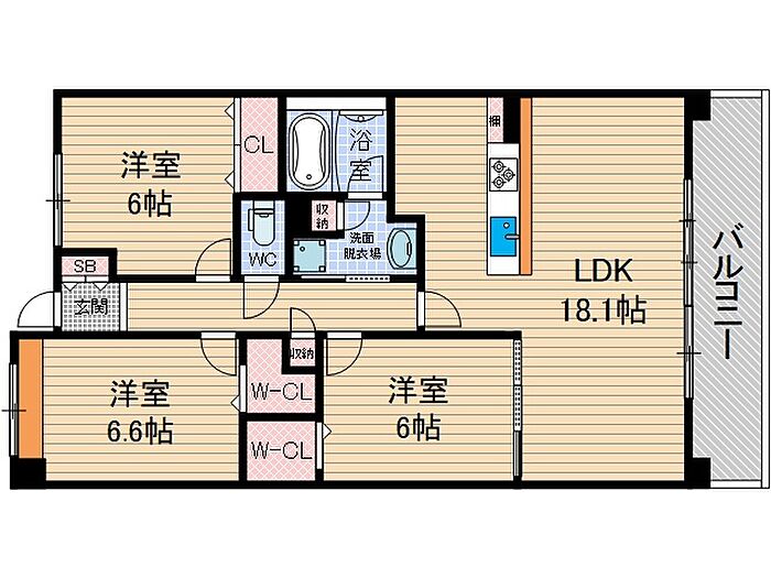 リビング18帖の広々した3LDKです。設備も充実しております。