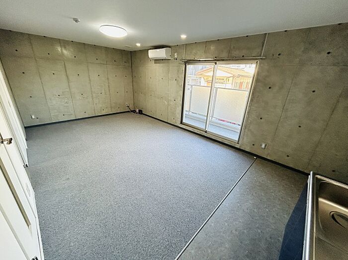 コンクリート打ちっぱなしのおしゃれマンション学生さんでも法人の転勤にももってこいのお部屋広々14帖でまったりリビング各部屋にエアコン、照明が付いていて便利