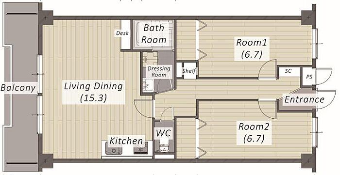 シティレジデンスKAMIKO 210 2LDK/2階
