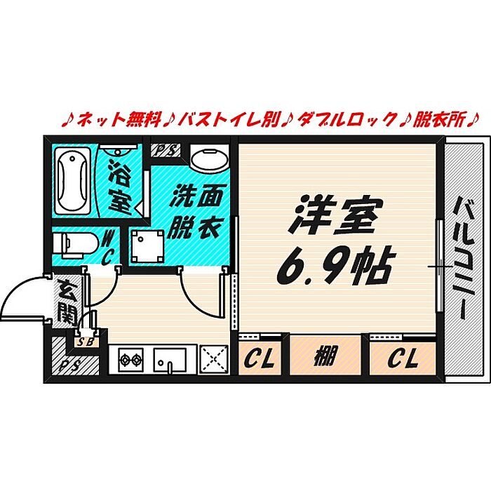 ネット無料♪バストイレ別♪南向き♪独立洗面台♪室内洗濯機置場♪