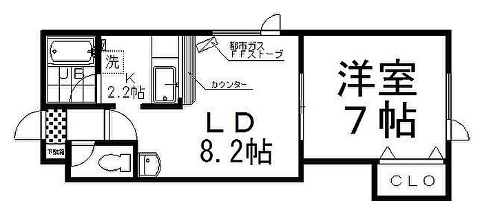 都市ガス1LDK物件☆人気の対面キッチンとカウンターが魅力的!駐車場1台無料でご利用可能です!