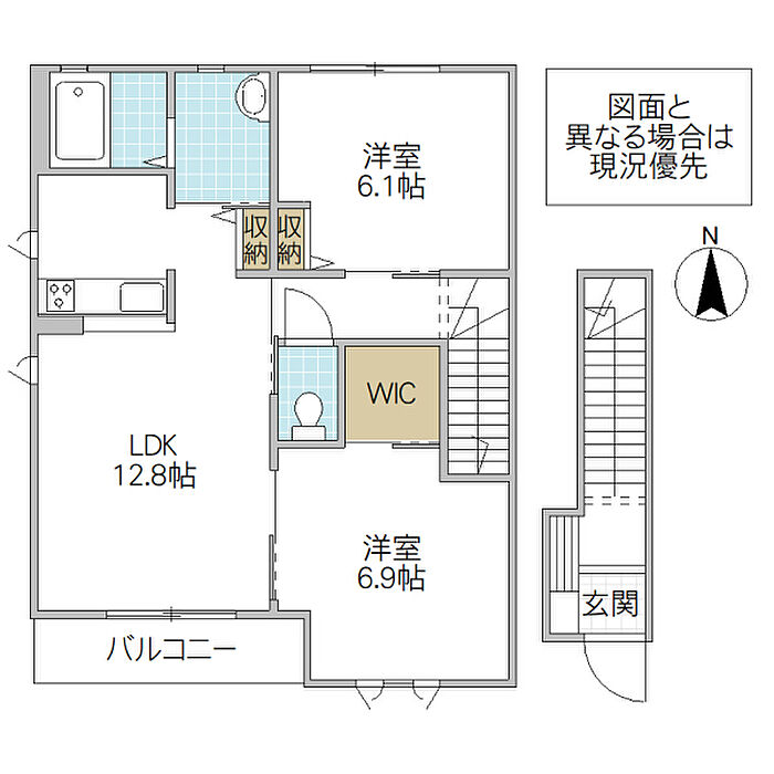 ウォークインクローゼット付でラクラク収納!! ゆったり60m2超の2LDK