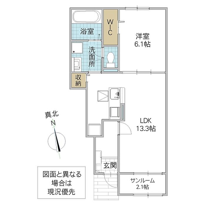(洋6.1/LDK13.3/サンルーム2.1)