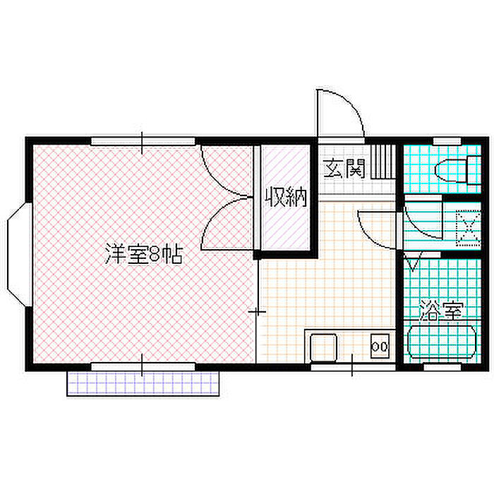 ゆとりある造りの1K。2F角部屋。