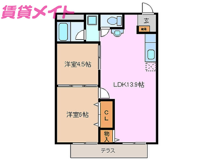 シティハイツ別名B 2LDK/1階