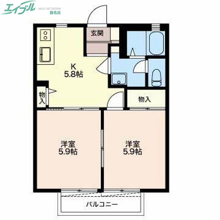 アドバンテージB棟 2DK/1階