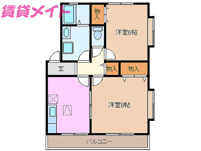 コーポハッピーメーク2 2DK/2階