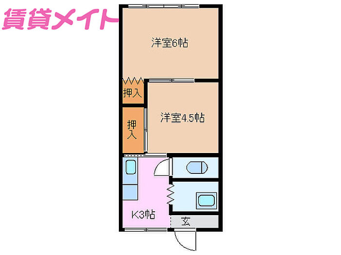 ルフラン室山 2K/2階