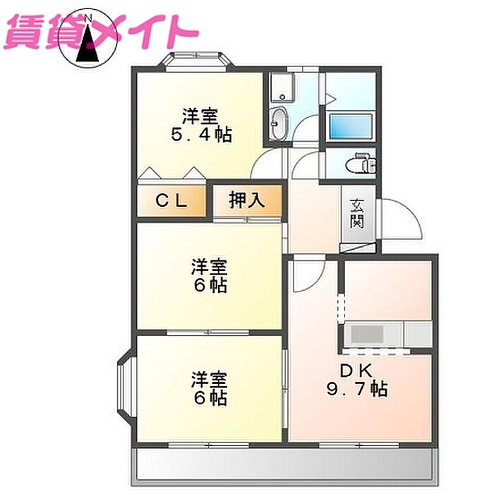 鈴鹿市高岡台2丁目 アパート 3DK/2階