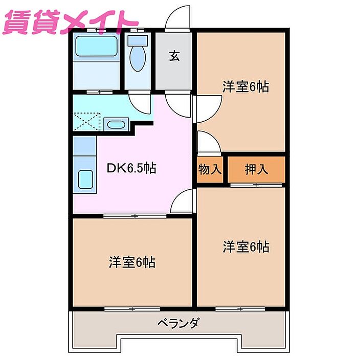 鈴鹿市西条6丁目 アパート 3DK/2階